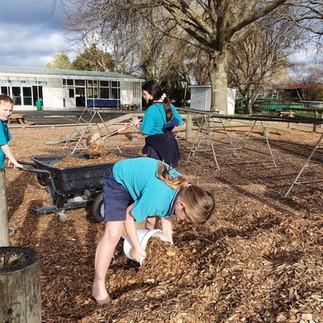 Thank you to our wonderful Kairiaki who not only look after our garden but helped Rachel to put bark on the playground.
