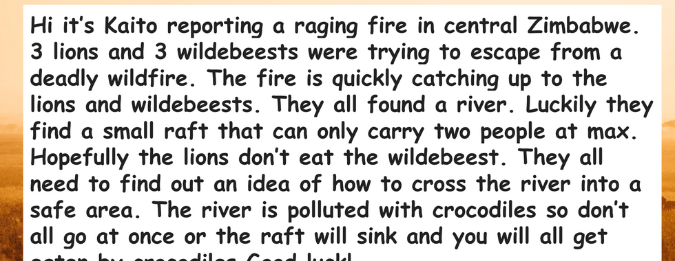 It was the middle of Africa.The day was the hottest of the year. Hotter than I've ever felt before. It was much hotter than you could ever imagine and my fur was not making it easier to cool down.